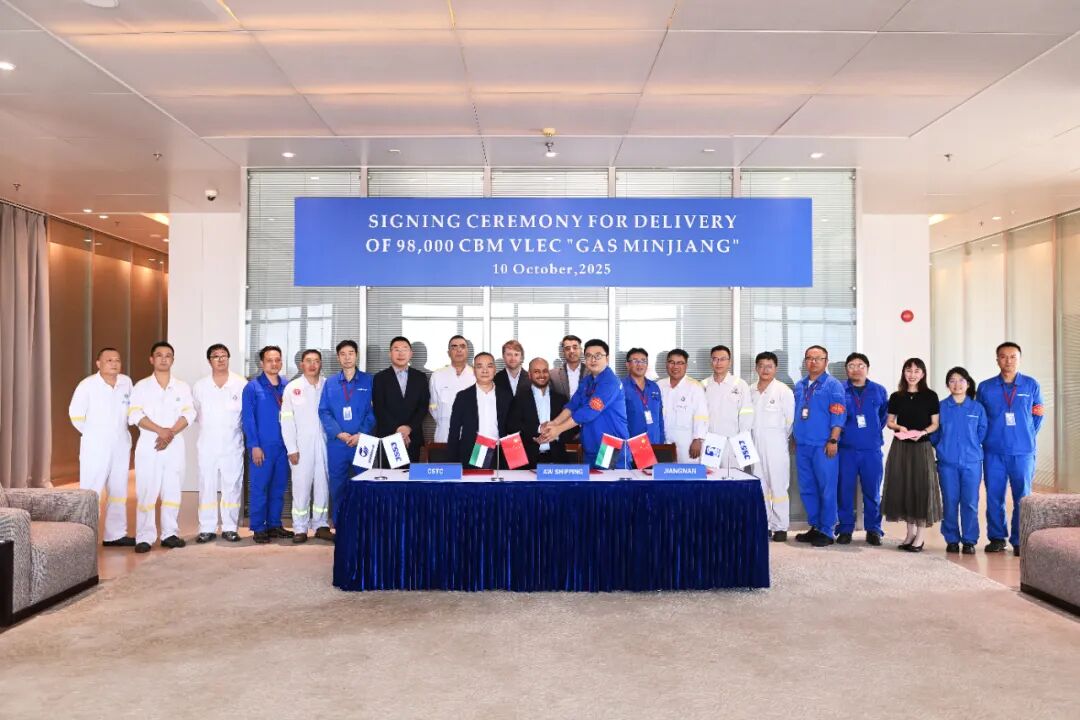 公司交付一艘超大型乙烷运输船10月10日,中船集团江南造船为阿布扎比国家石油公司(ADNOC)和万华化学合资公司AWShipping建造的超大型乙烷运输船系列船第二艘(H2725船)“GASMINJIANG”签字交付。从2...查看详情 时间:2025-10-10
